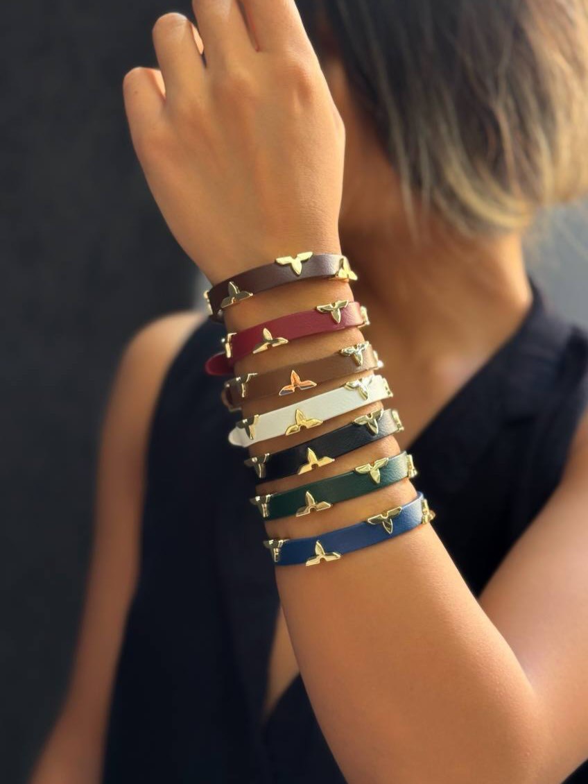 دستبند بند چرمی زنانه مدل پلاک لویی ویتون